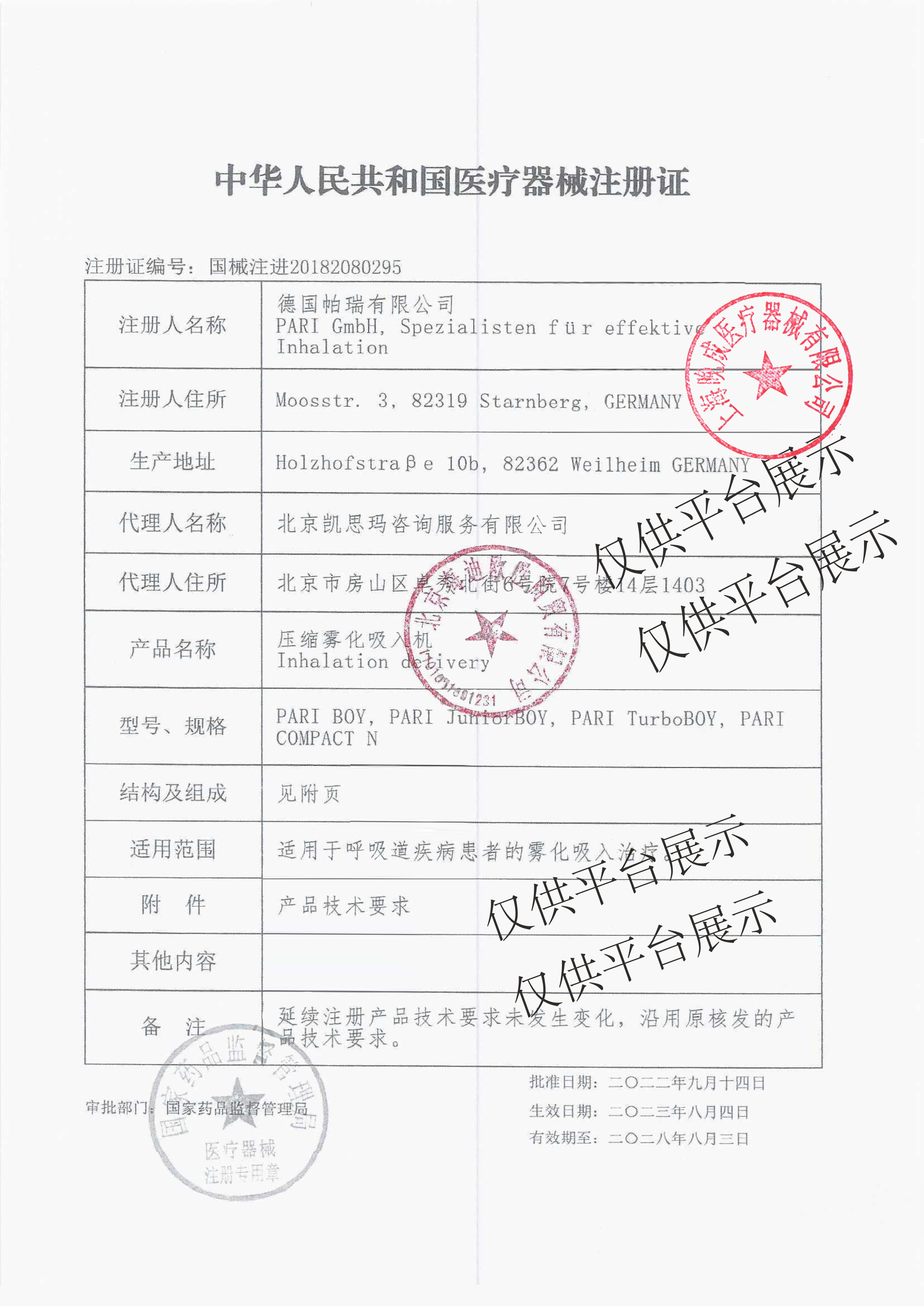 進口注冊編號:SFDA(I)20042542148