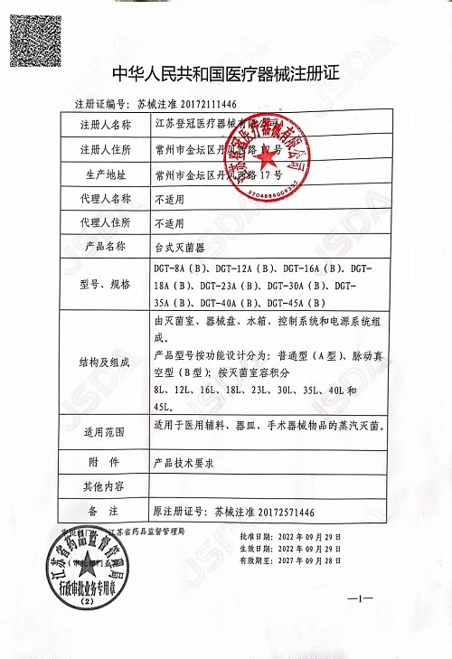 產(chǎn)品名稱 : 登冠臺(tái)式滅菌器DGT-8B型