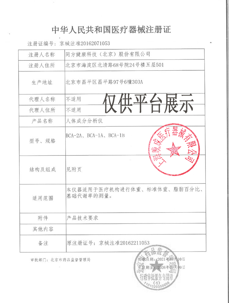 醫(yī)械網(wǎng)是一家提供清華同方BCA-1C人體成分測試儀/人體成分分析儀價(jià)格、參數(shù)介紹等信息的展示平臺,為您提供優(yōu)質(zhì)的清華同方BCA-1C人體成分測試儀/人體成分分析儀產(chǎn)品,上海晚成醫(yī)療器械有限公司專注于各類醫(yī)療器械批發(fā)及零售,聯(lián)系電話:400-006-1850。